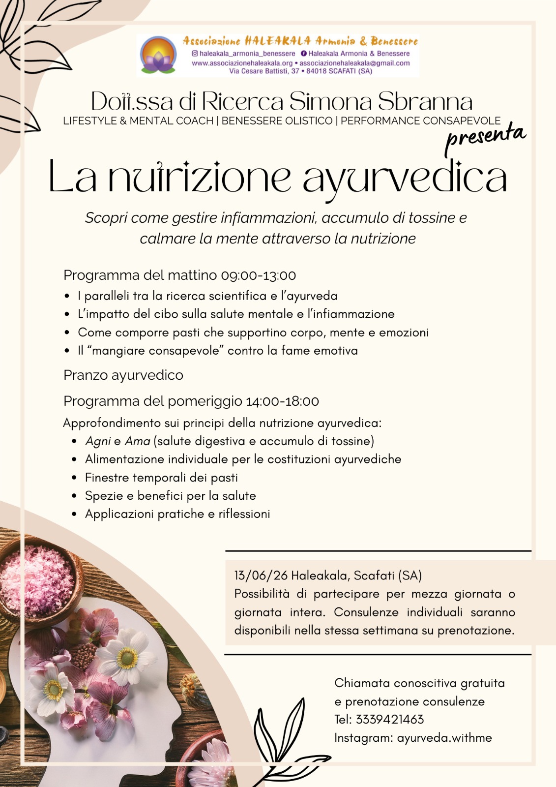 13 giugno 2026 dalle 9 alle 18 compreso pranzo ayurvedico