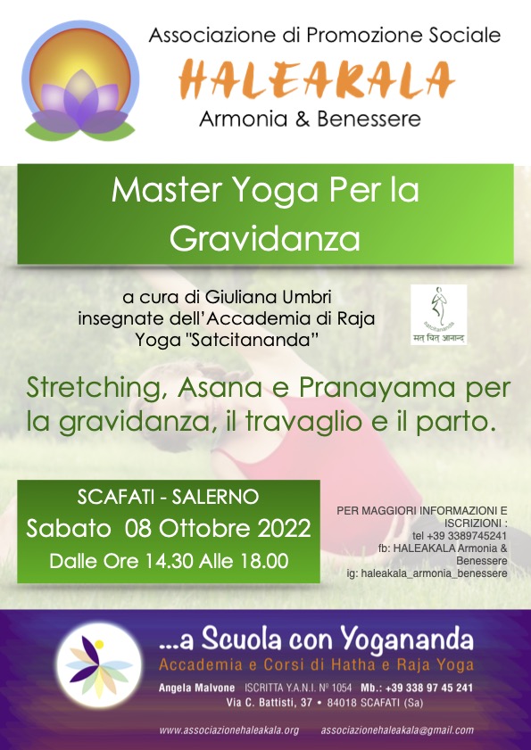 Il master è correlato di tutta la pratica adatta in gravidanza: Stretching, Asana e soprattutto Pranayama, in particolare quelli da adottare negli ultimi mesi, durante il travaglio e durante il parto. Seguendo un percorso che si svilupperà mese per mese, le donne avranno la possibilità di conoscere a fondo il proprio corpo che cambia e di collegarsi ad esso con più consapevolezza.