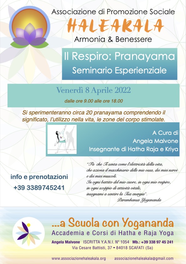IL RESPIRO: PRANAYAMA 8 APRILE 2022 venerdì dalle 9.00 alle 18.00